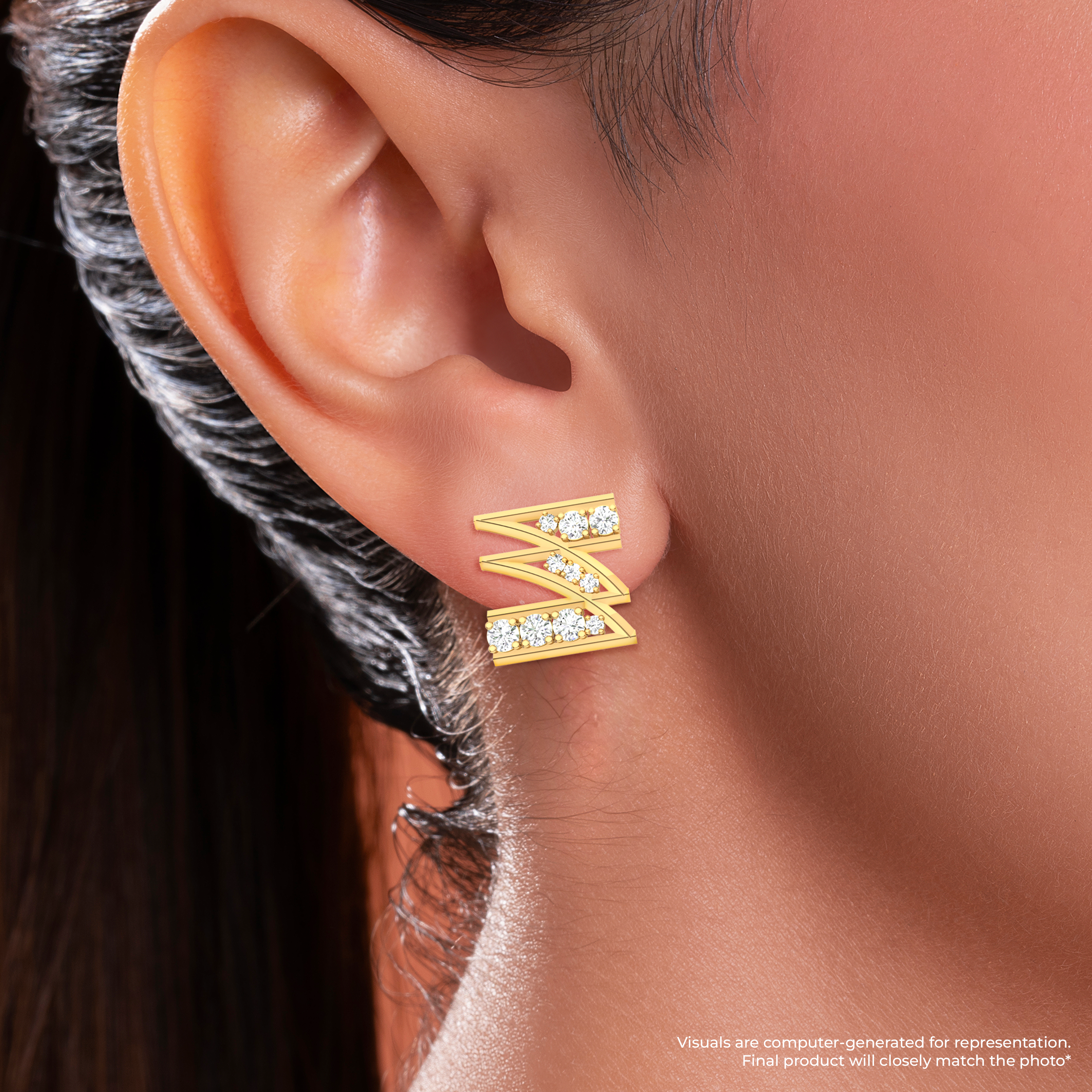 This Novaro original high jewellery piece redefines the statement earring, artfully showcasing our signature "N" logo with a distinct knife-cut finish for an edgy, modern sensibility. Dazzling lab-grown round diamonds, varying in size, are intricately nestled within the "N" pattern, creating an elongated stud that exudes both classic elegance and bold sophistication.