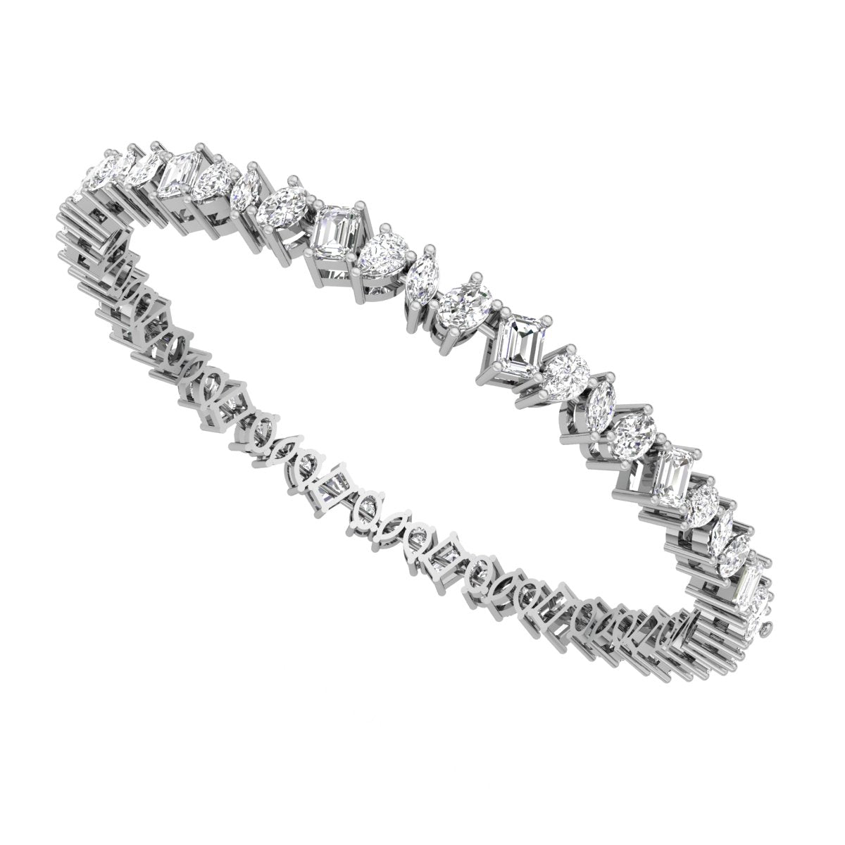 A symphony of light with The Mosaic Bracelet. Novaro reimagines the classic tennis bracelet with this exquisite piece, showcasing a dynamic interplay of lab-grown diamonds in varied cuts – including emerald, oval, pear, and marquise. Each shape contributes to a continuous cascade of brilliance, inviting you to express your individuality unapologetically and let your story shine, authentically, every single day.
