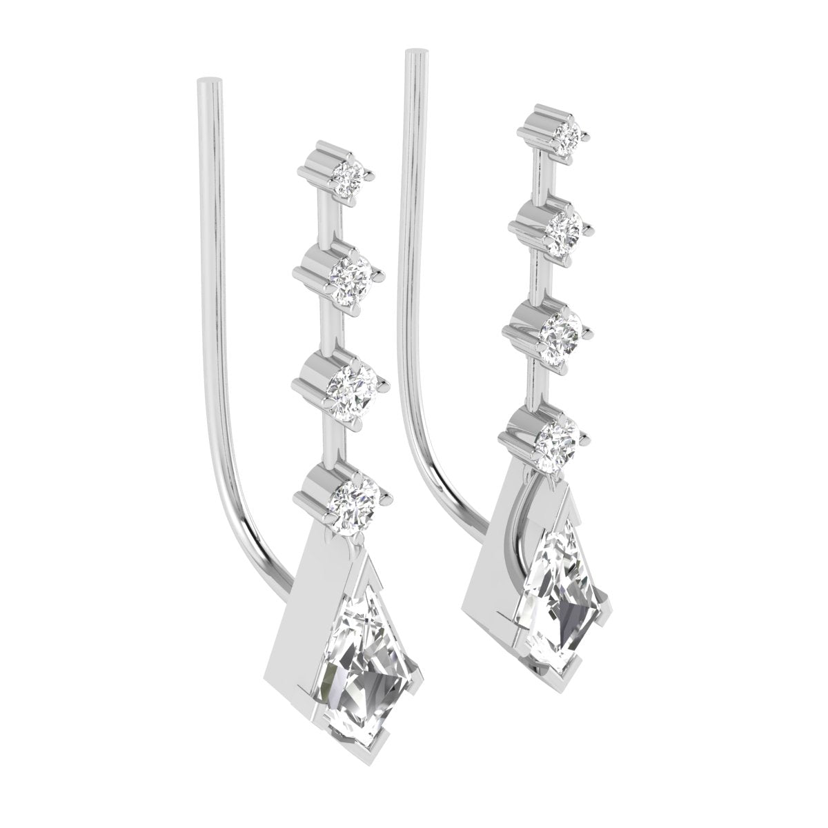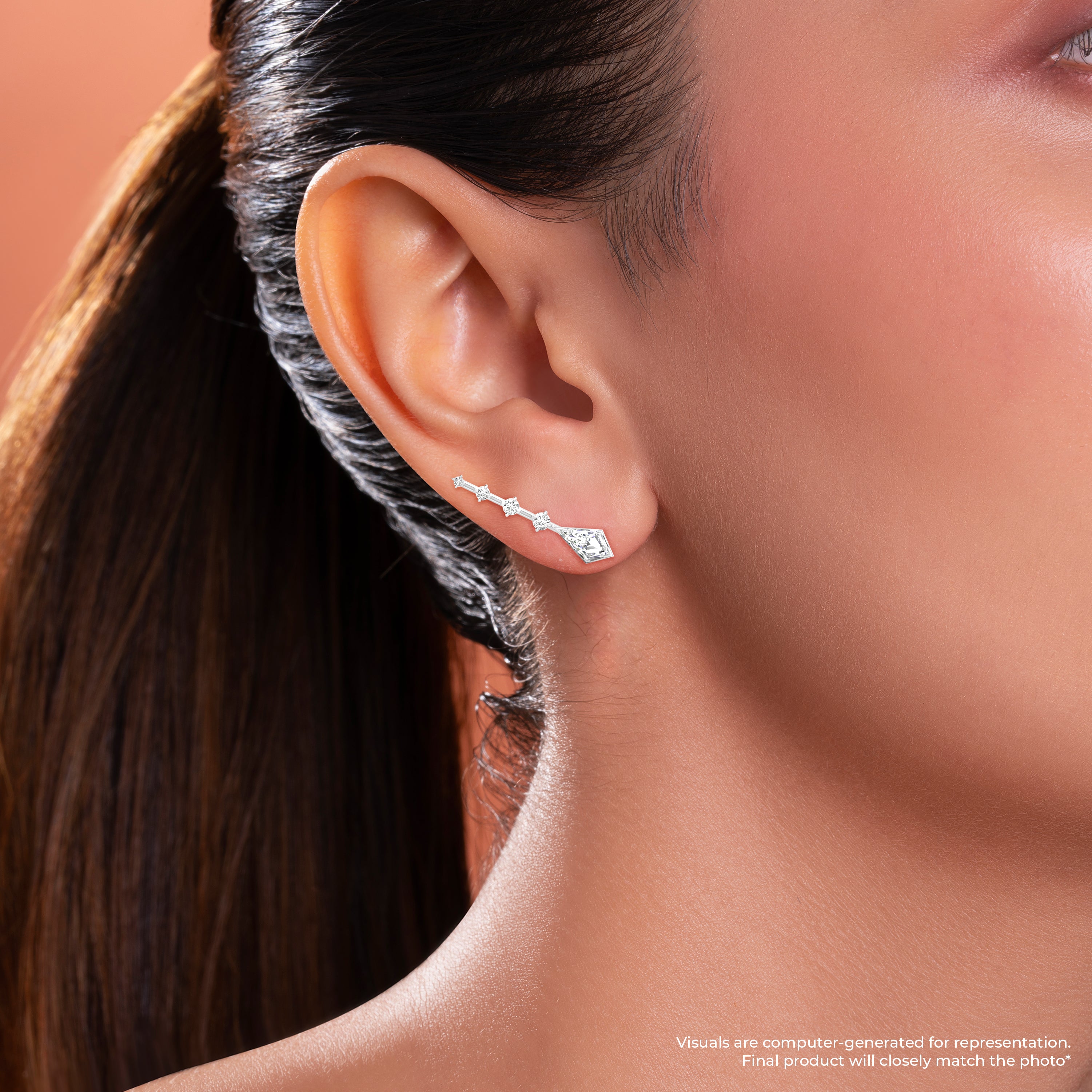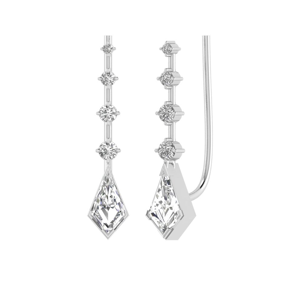 These Novaro statement earrings blend accessible luxury with undeniable edge. The huggie hoop shimmers with a playful scattering of lab-grown round diamonds, while the innovative kite-cut diamond drops, set in defiant opposition, ensure your unique narrative shines. Personalize your drop's stone shape to craft a look as distinctive as your own attitude.