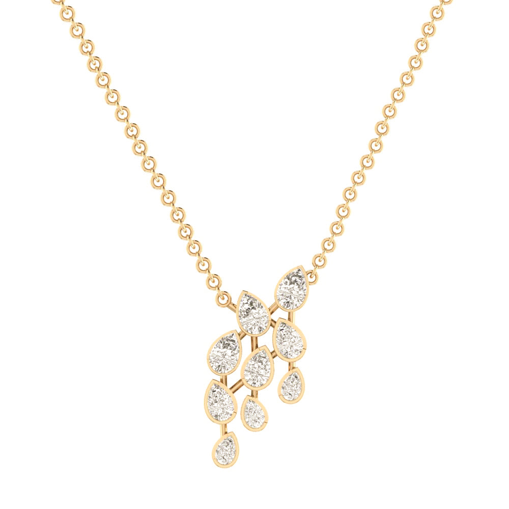 The River of Light Pendant, a true testament to Novaro's innovative spirit. This exquisite piece features a unique, cascading arrangement of pear-cut lab-grown diamonds, each partially bezel-set to truly highlight its individual sparkle. Designed to create a flowing, luminous effect, this pendant isn't just jewelry—it's your story, sparkling authentically and transforming every day into an unforgettable moment.