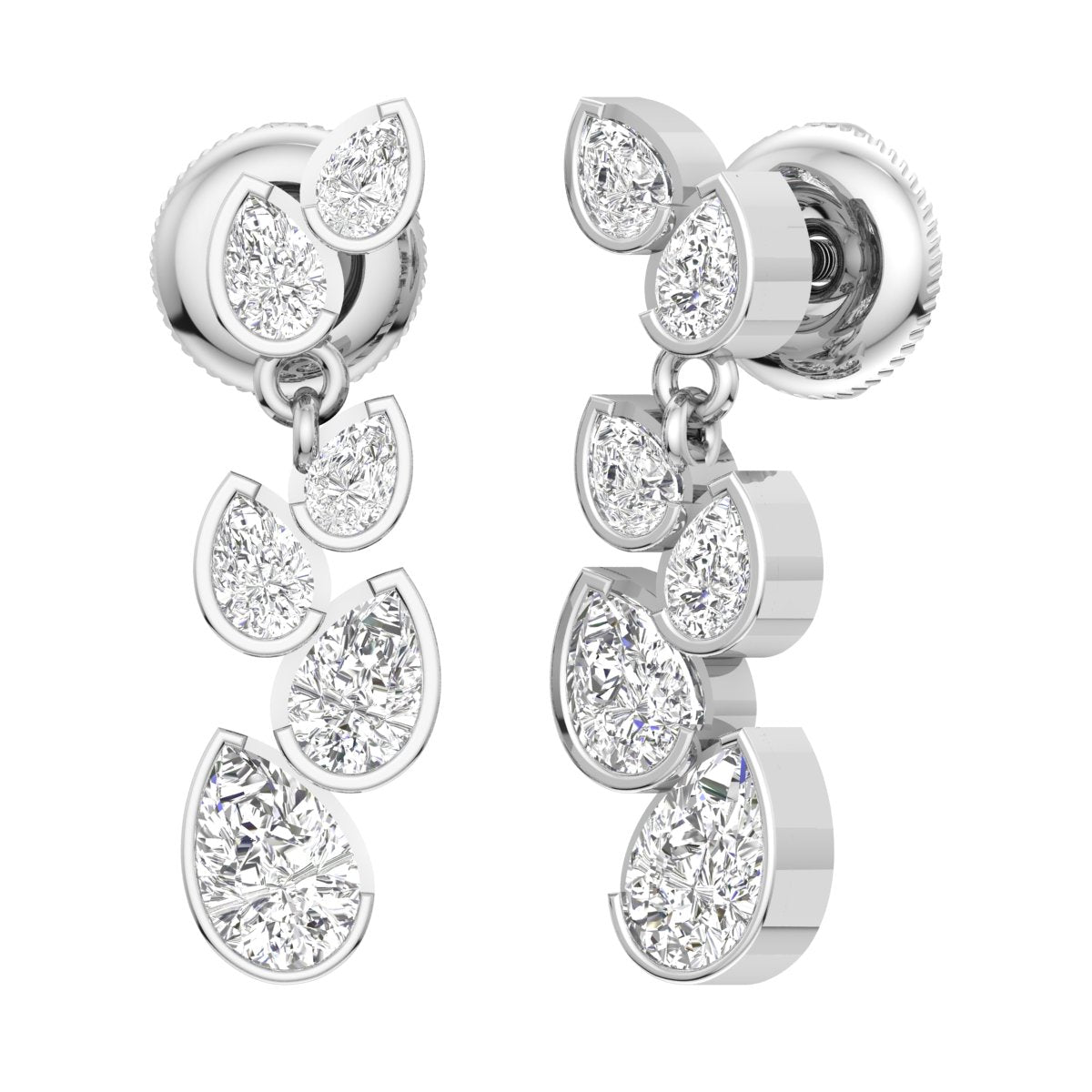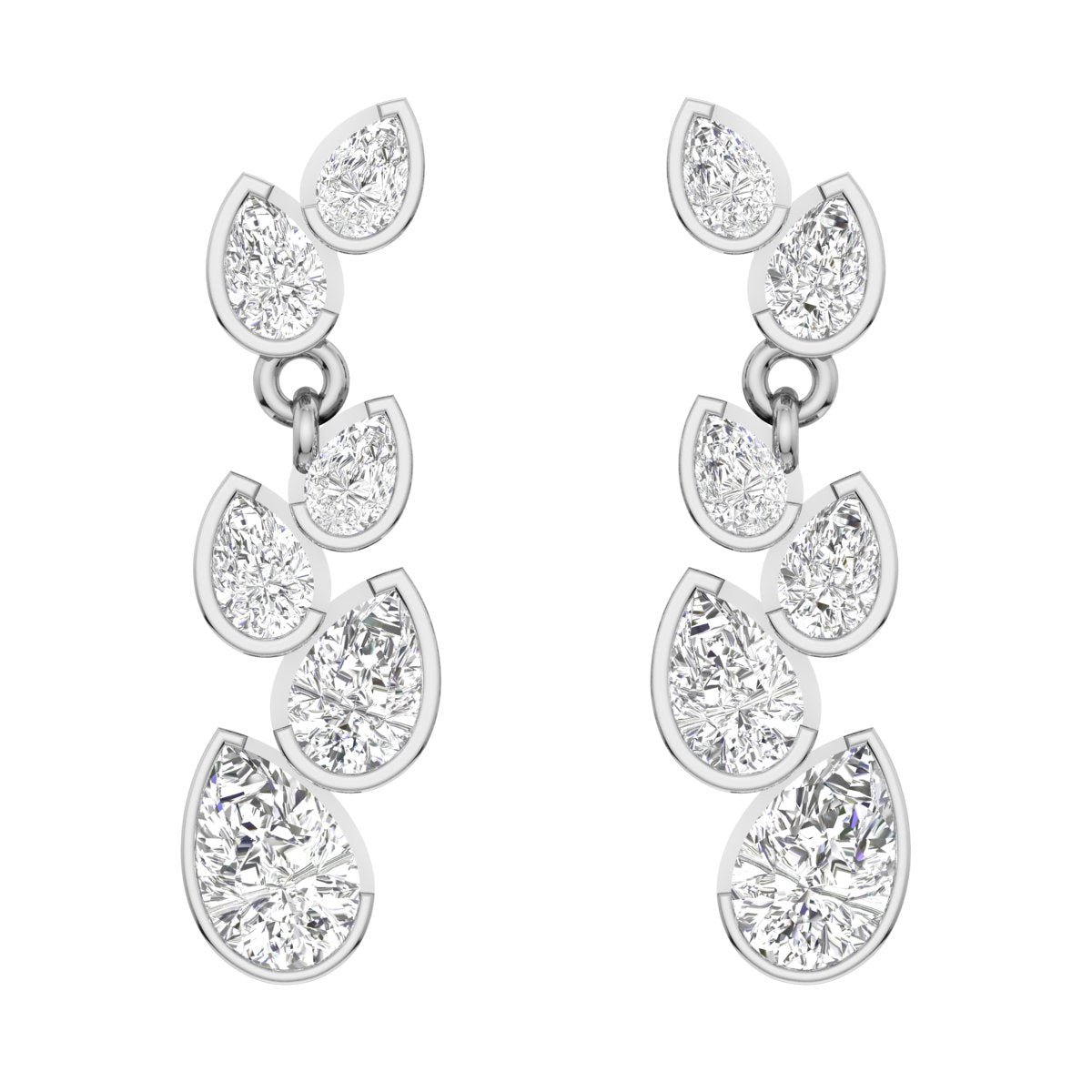 This Novaro design is a testament to elegant innovation, featuring alternating-sized, pear-cut lab-grown diamonds precisely arranged and partially bezel-set to enhance their spectacular shine. Their unique opposing angles ensure a mesmerizing display of light, making every day an occasion to sparkle authentically and unapologetically.