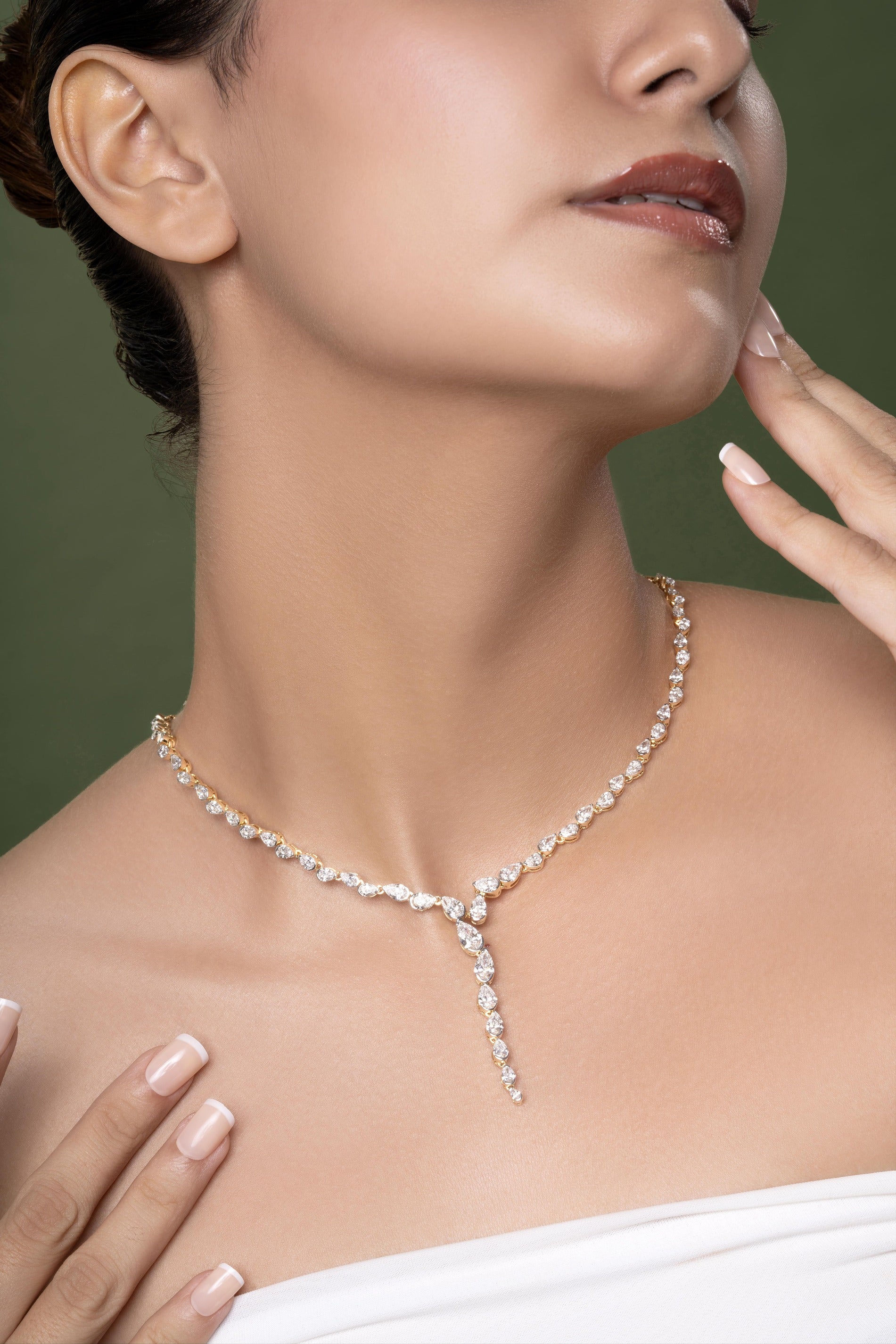 Unfold your radiance with the Nova Bloom Necklace. This exquisite Novaro design presents a stunning progression of lab-grown pear-cut diamonds, creatively set at opposing angles with partial bezels to form a striking drop silhouette. It's more than just jewelry; it's an invitation to authentically sparkle, turning ordinary moments into extraordinary declarations.