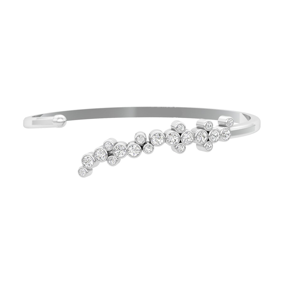 This distinctive open bangle from Novaro showcases a dynamic stream of alternating-sized, bezel-set lab-grown round diamonds, creating an illusion of effortless movement around your wrist.